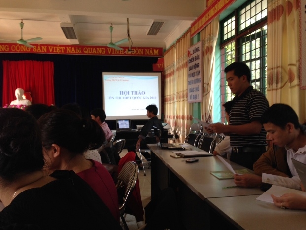Hội thảo đã nghe đồng chí Đào Anh Đức – phó hiệu trưởng nhà trường báo cáo đánh giá kết quả công tác ôn thi THPT Quốc gia năm học 2014 – 2015 và gai đoạn một năm 2015 – 2016. Hội thảo cũng đã nghe tham luận của đại diện giáo viên các bộ môn: Toán, Ngữ văn, Địa lý, Lịch sử, Vật lý, Hóa học, Sinh học và tiếng Anh về kết quả, kế hoạch và phương pháp tổ chức ôn thi THPT Quốc gia của bộ môn.