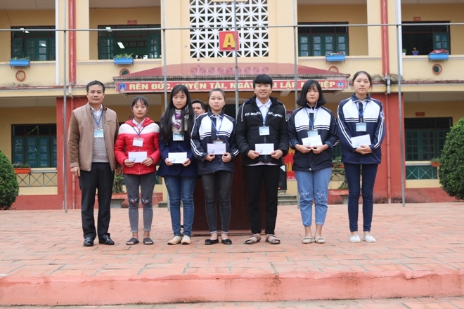 Thầy Nguyễn Văn Công – Phó hiệu trưởng, trao phần thưởng cho lớp trưởng tiêu biểu, xuất sắc nhất (12A1, 11A2, 11A5, 12A6, 12A4, 11A3)  Thầy Hà Văn Tuyệt – CT. Công đoàn trao phần thưởng cho học sinh nghèo vượt khó (21 học sinh)  Thầy Phạm Văn Nghiêm trao phần thưởng cho hs Bùi Thị Bích – 12A1 đạt nhiều vé số học tập nhất